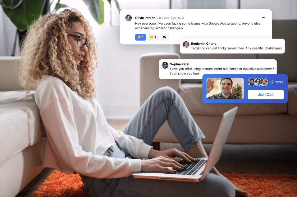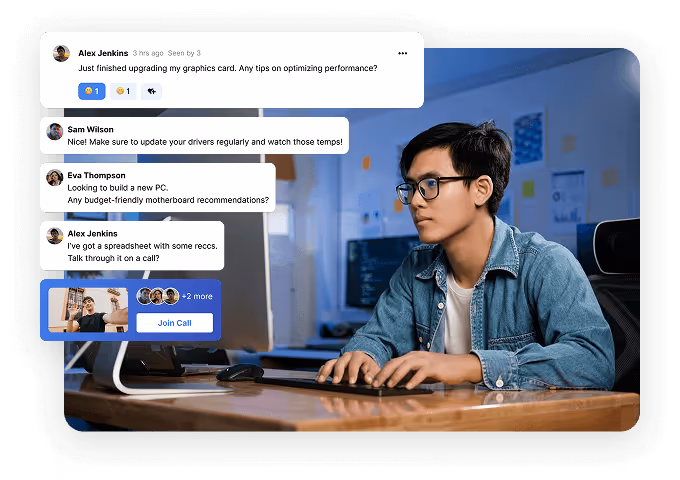 Create chats, channels, and 24/7 meeting or voice rooms to empower members to engage how they feel most comfortable.