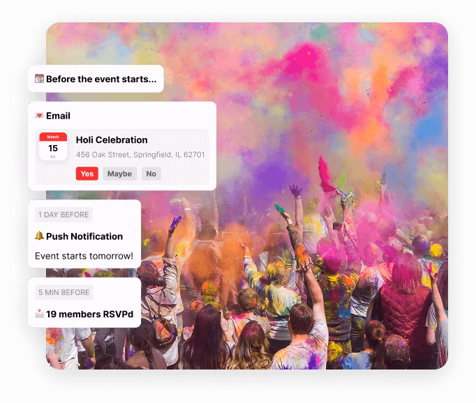 Integrate Zoom, Google Calendar, and Outlook so events stay top of mind for every member.